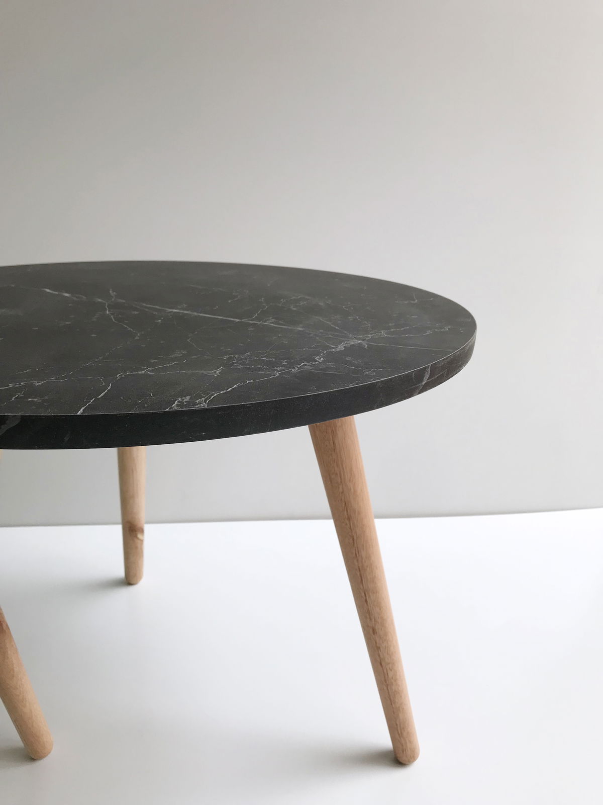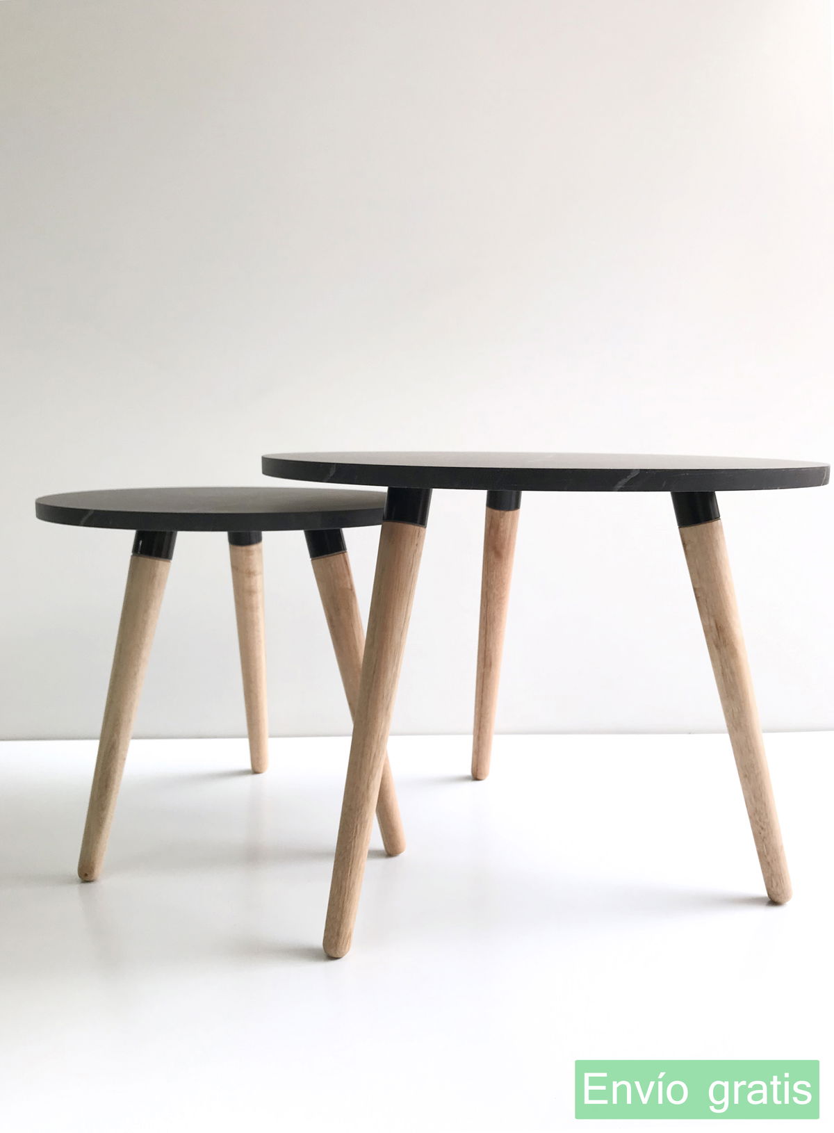 ° 2 Mesas, circular con patas de madera maciza.