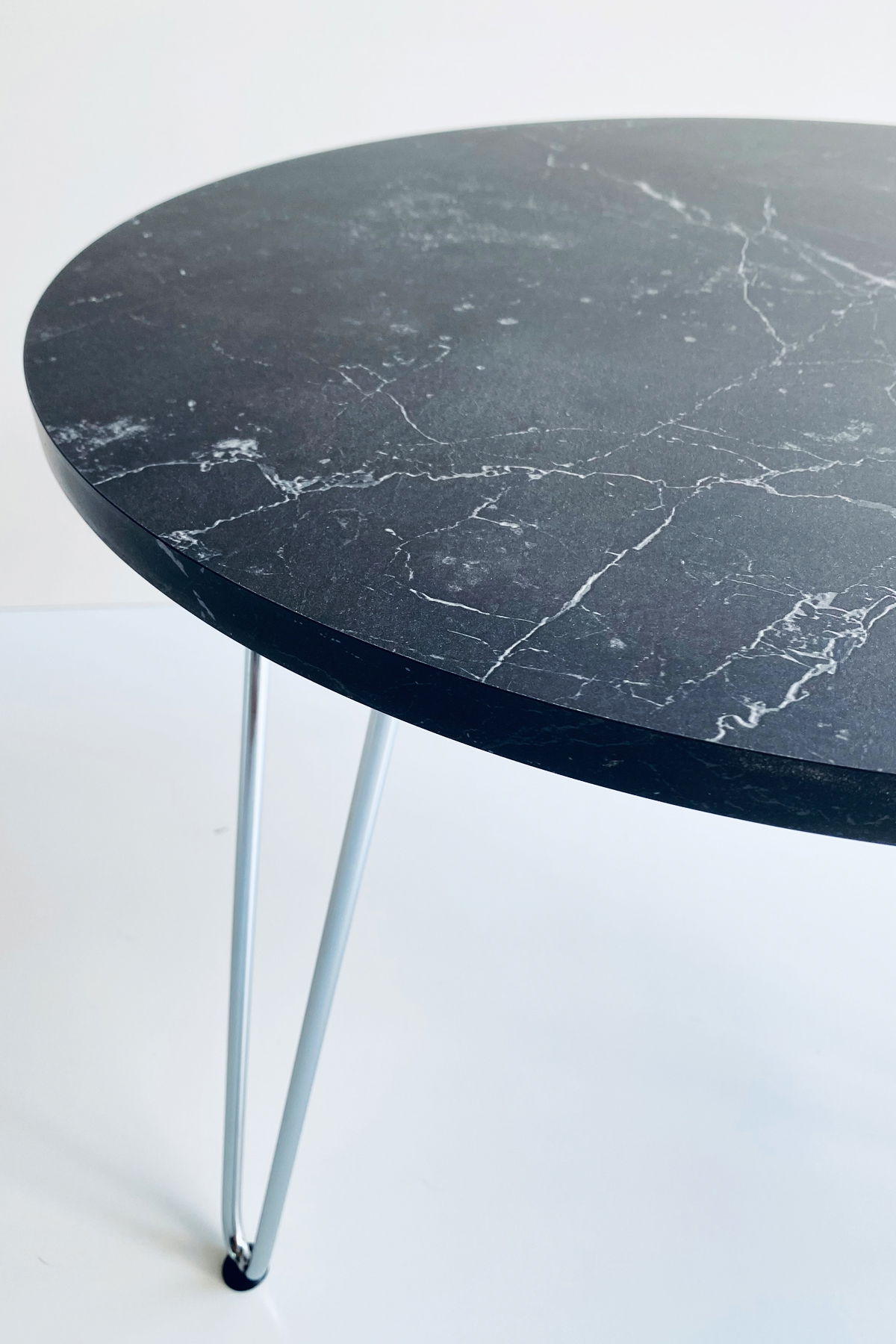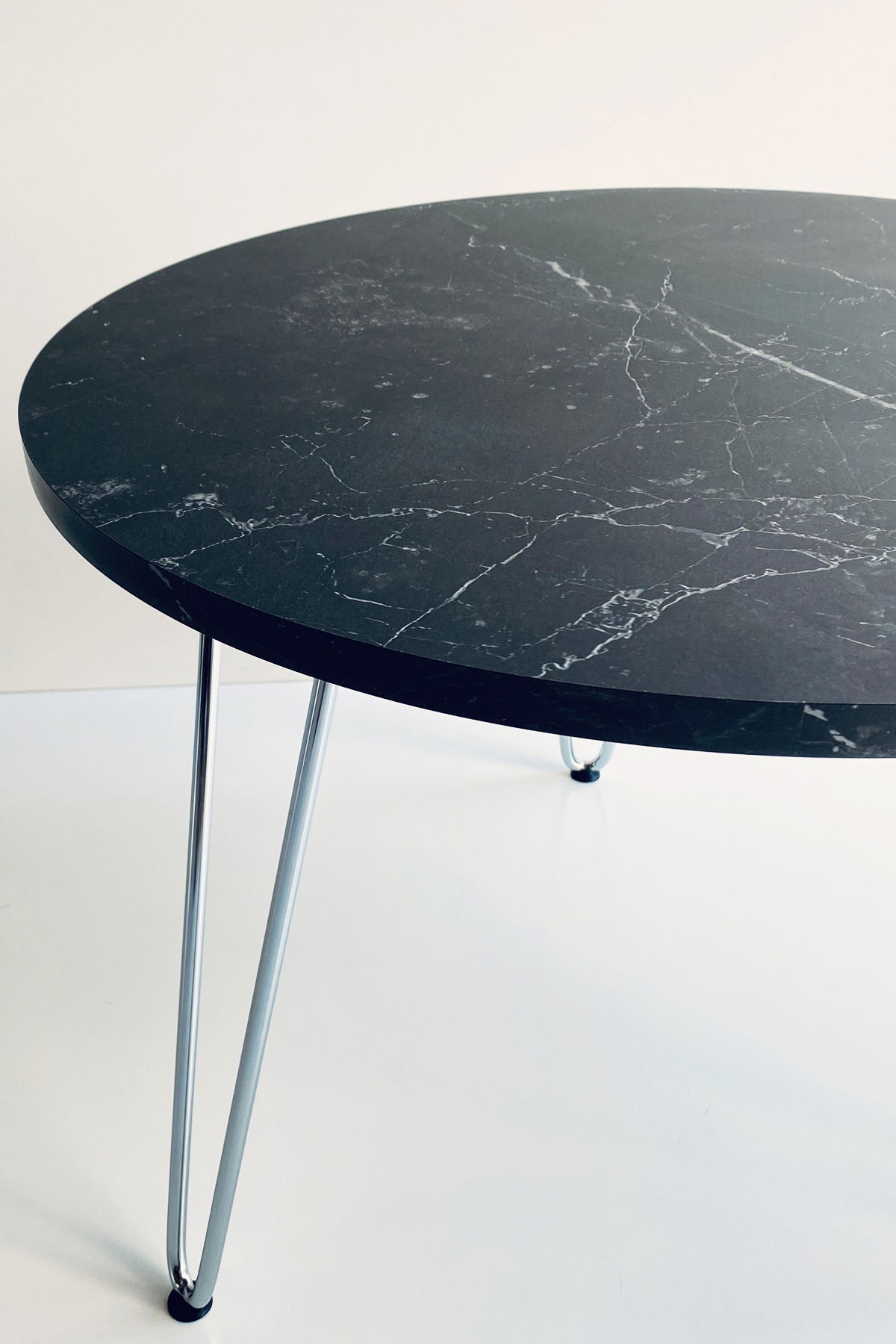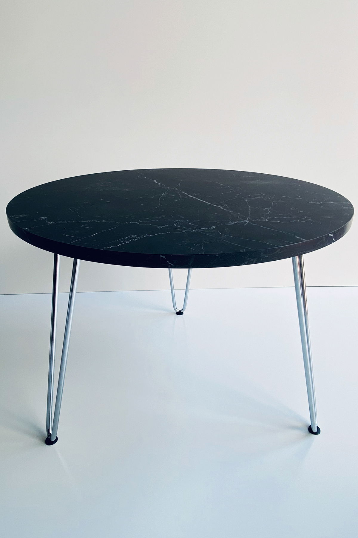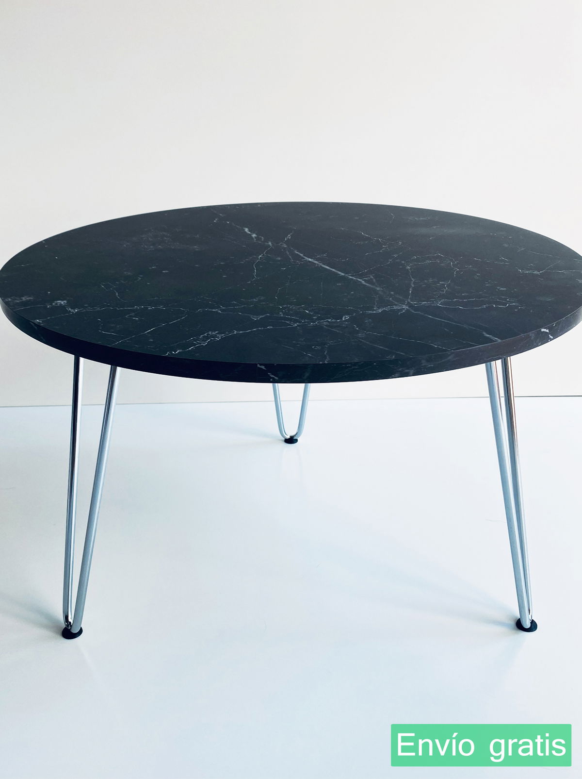 ° Mesa Ratona circular con patas hairpin CROMADAS. ÚNICA!!!