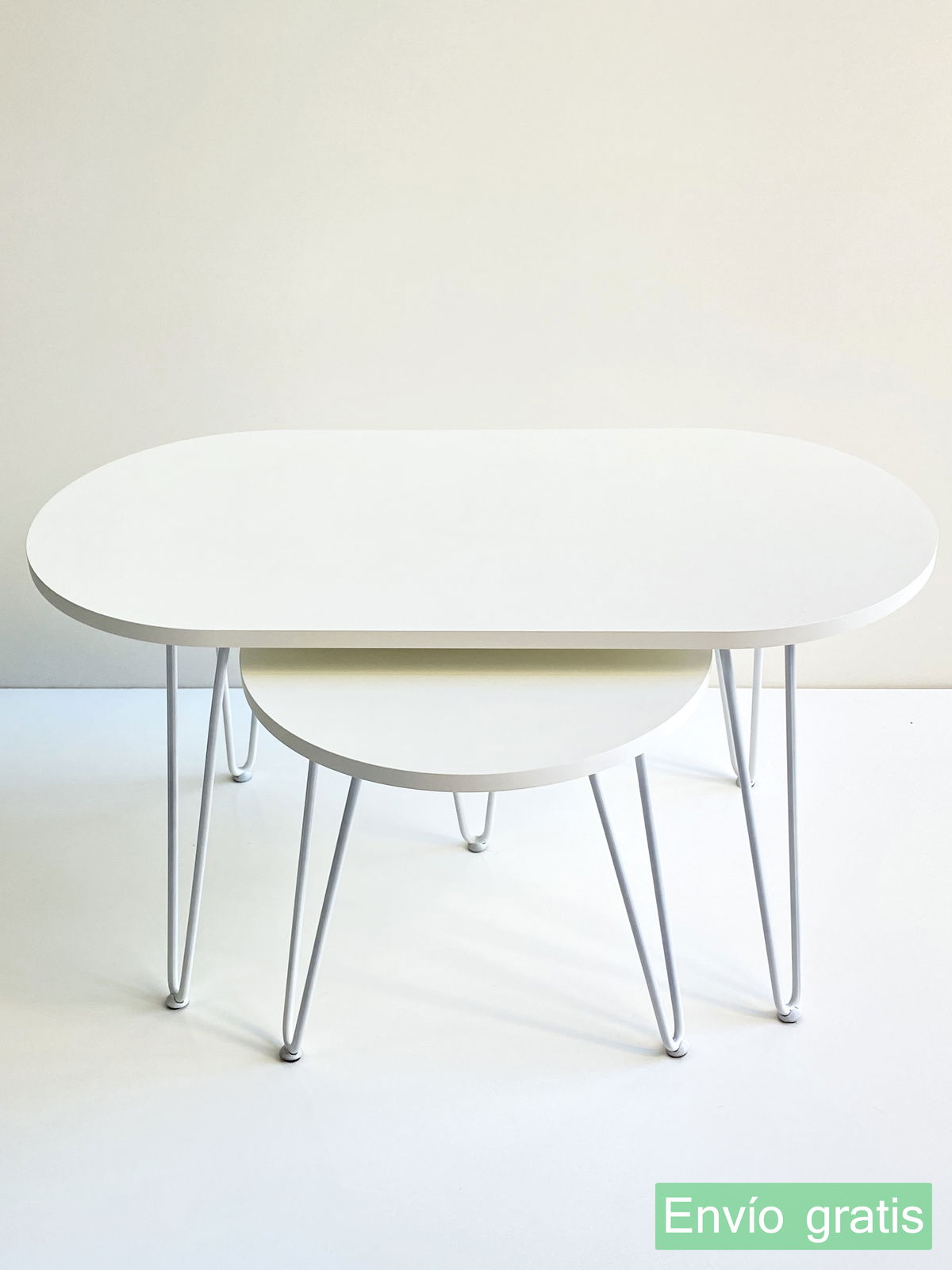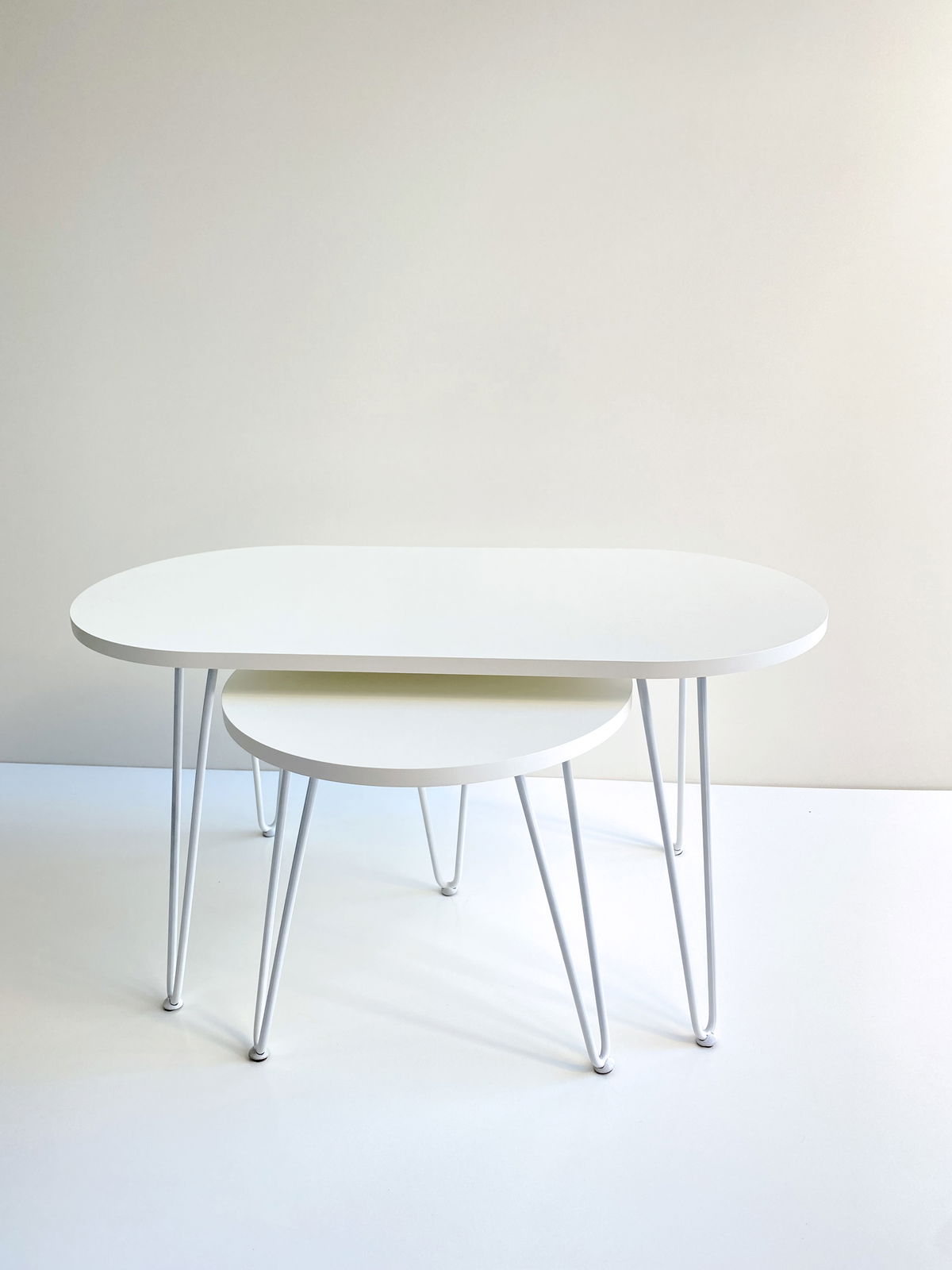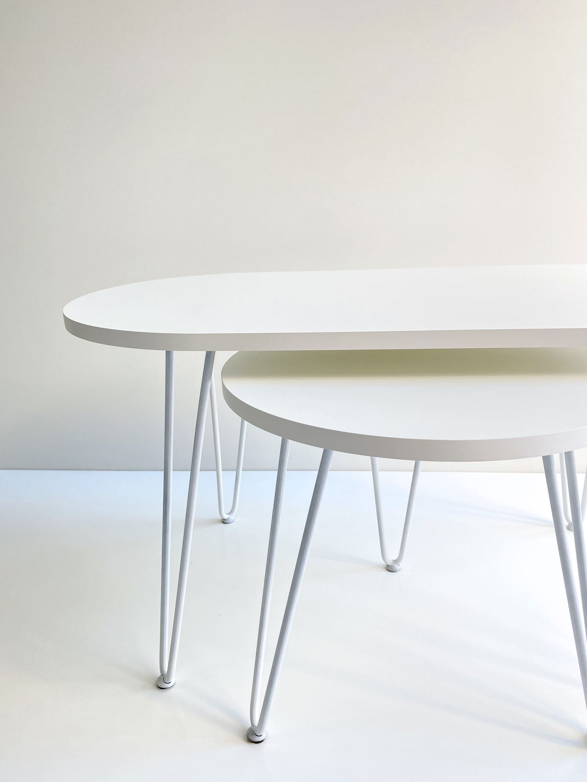 ° 2 Mesas ratona / nido, oval y circular con patas Hairpin.